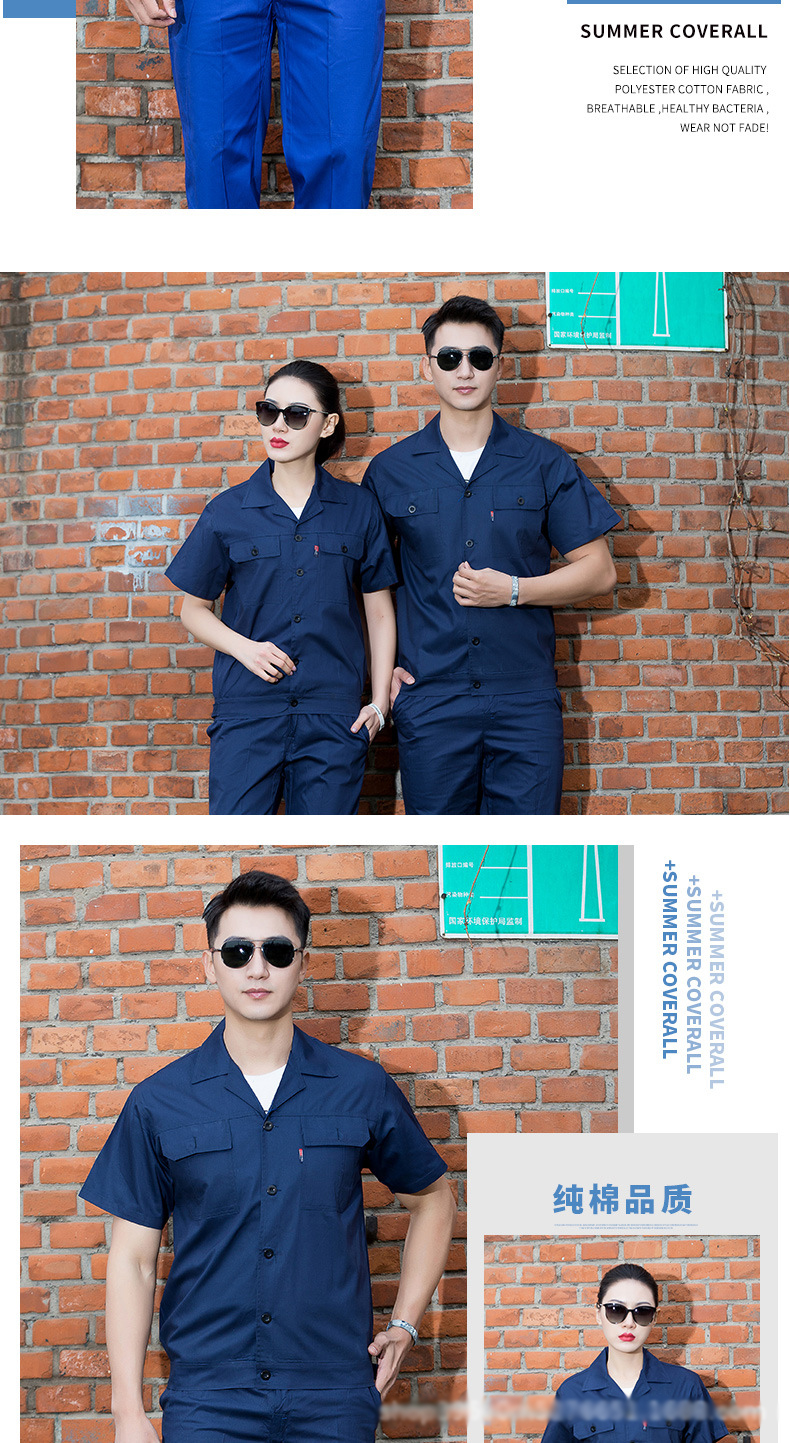 夏季纯棉长袖短袖工作服套装工厂薄款耐磨定